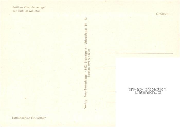 73615092 Bad Staffelstein Basilika Vierzehnheiligen Fliegeraufnahme postalisch nicht gelaufen Erhaltung siehe scans [PaolaD17] KatCode: 11110009478165