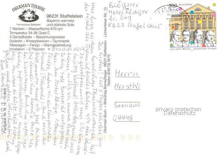 73009183 alte Postkarte Bad Staffelstein Fliegeraufnahme Obermain Therme Brunnen Hallenbad postalisch gelaufen Erhaltung siehe scans [WerneD78] KatCode: 11110009478165