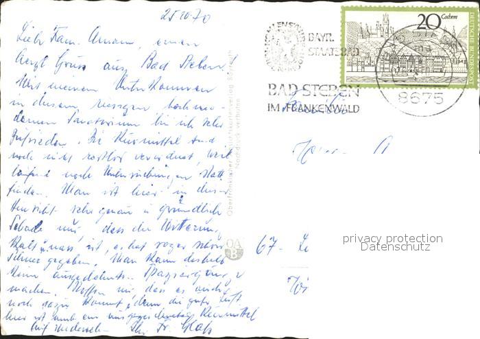 72276894 alte Postkarte Bad Steben postalisch gelaufen Erhaltung siehe scans KatCode: 11110009475112