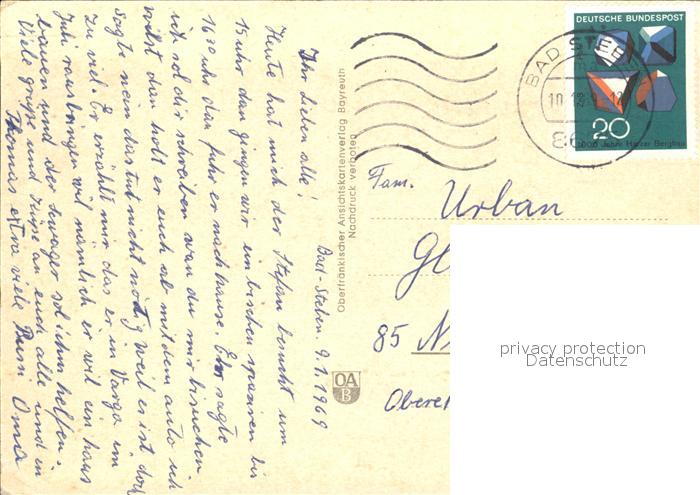 72304495 alte Postkarte Bad Steben Alte Wehrkirche Neue Kirche Schwanenteich Schlosshotel postalisch gelaufen Erhaltung siehe scans KatCode: 11110009475112