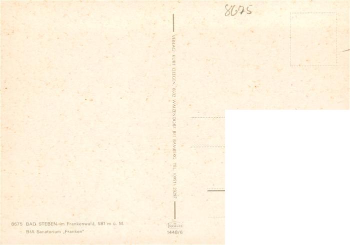 73940546 Bad Steben BfA Sanatorium Franken postalisch nicht gelaufen Erhaltung siehe scans [FriedD77] KatCode: 11110009475112