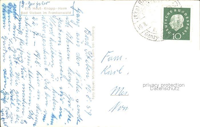 72273439 alte Postkarte Bad Steben Elly Heuss Knapp- Heim postalisch gelaufen Erhaltung siehe scans KatCode: 11110009475112