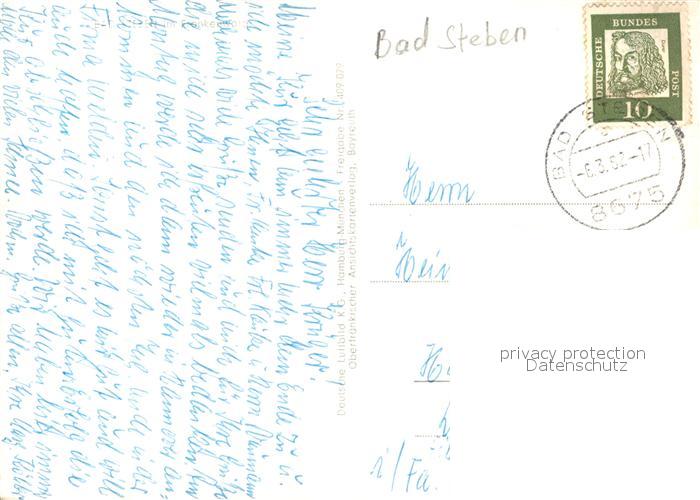 73141900 alte Postkarte Bad Steben Fliegeraufnahme postalisch gelaufen Erhaltung siehe scans [FriedD77] KatCode: 11110009475112