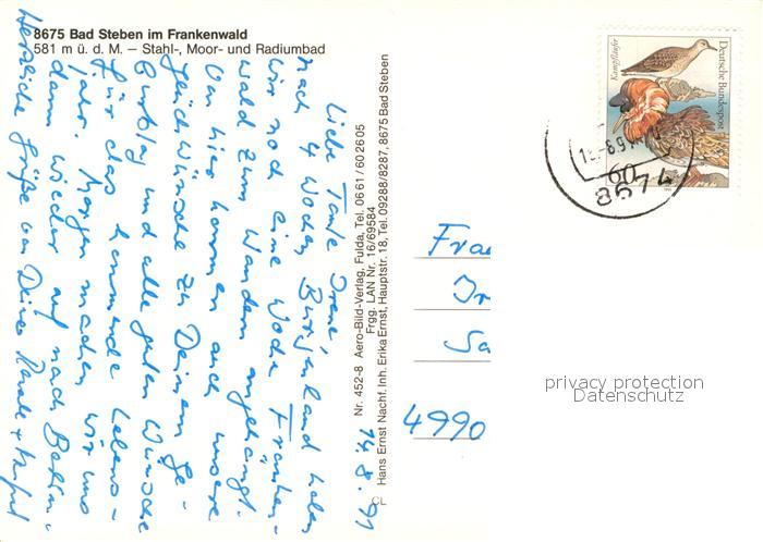 73119835 alte Postkarte Bad Steben Fliegeraufnahme postalisch gelaufen Erhaltung siehe scans [LiesaD40] KatCode: 11110009475112