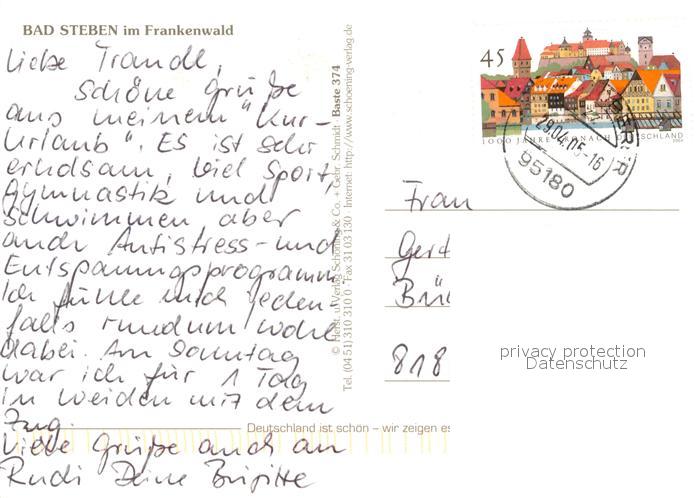 73062158 alte Postkarte Bad Steben Fliegeraufnahme postalisch gelaufen Erhaltung siehe scans [NatalD47] KatCode: 11110009475112