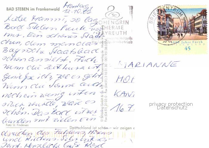 72727778 alte Postkarte Bad Steben Fliegeraufnahme postalisch gelaufen Erhaltung siehe scans [LiesaD40] KatCode: 11110009475112
