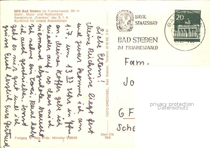 72572728 alte Postkarte Bad Steben Fliegeraufnahme postalisch gelaufen Erhaltung siehe scans [AndreD76] KatCode: 11110009475112