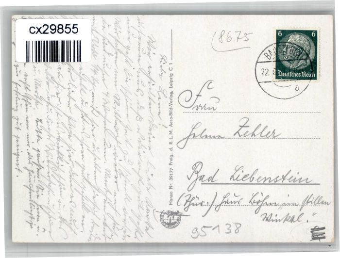 30923899 alte Postkarte Bad Steben Fliegeraufnahme postalisch gelaufen KatCode: 11110009475112