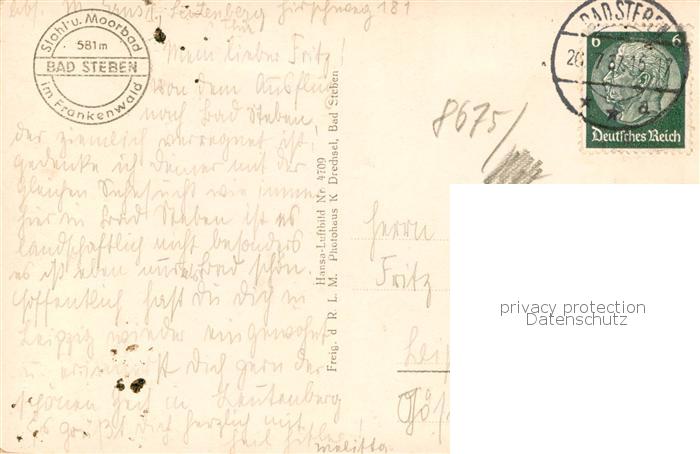 73811404 alte Postkarte Bad Steben Fliegeraufnahme postalisch gelaufen Erhaltung siehe scans [FriedD77] KatCode: 11110009475112
