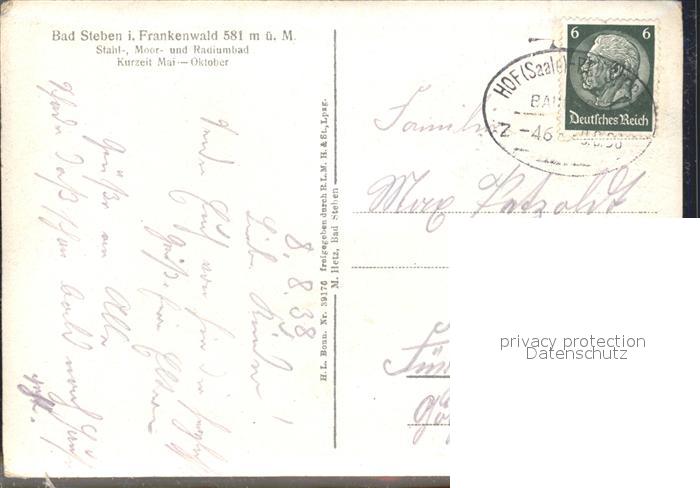 72304720 alte Postkarte Bad Steben Fliegeraufnahme Bahnpost postalisch gelaufen Erhaltung siehe scans KatCode: 11110009475112