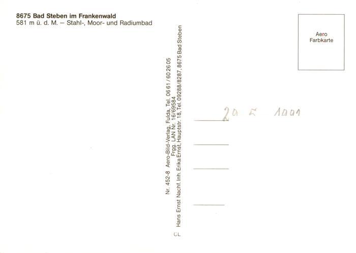73908703 Bad Steben Fliegeraufnahme mit Stahl Moor und Radiumbad postalisch nicht gelaufen Erhaltung siehe scans [WerneD78] KatCode: 11110009475112