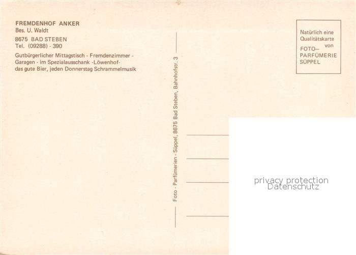 73683786 Bad Steben Fremdenhof Anker postalisch nicht gelaufen Erhaltung siehe scans [LiesaD40] KatCode: 11110009475112