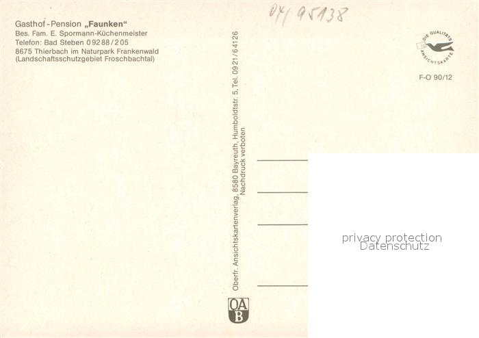 73653311 Bad Steben Gasthof Pension Faunken Gastraeume Kaminzimmer postalisch nicht gelaufen Erhaltung siehe scans [WerneD78] KatCode: 11110009475112