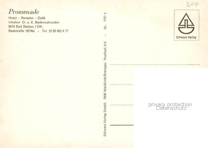 73843606 Bad Steben Hotel Promenade postalisch nicht gelaufen Erhaltung siehe scans [WerneD78] KatCode: 11110009475112