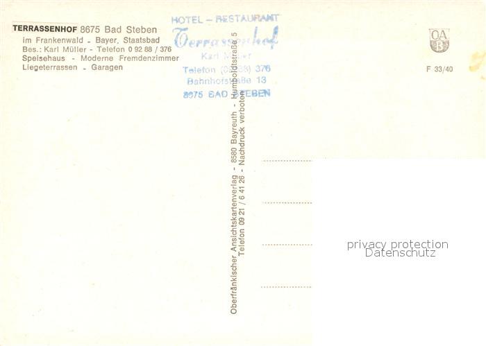 73323338 Bad Steben Hotel Restaurant Terrassenhof postalisch nicht gelaufen Erhaltung siehe scans [FriedD77] KatCode: 11110009475112