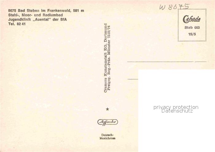 72884129 Bad Steben Jugendklinik Auental der BfA Fliegeraufnahme postalisch nicht gelaufen Erhaltung siehe scans [WerneD78] KatCode: 11110009475112
