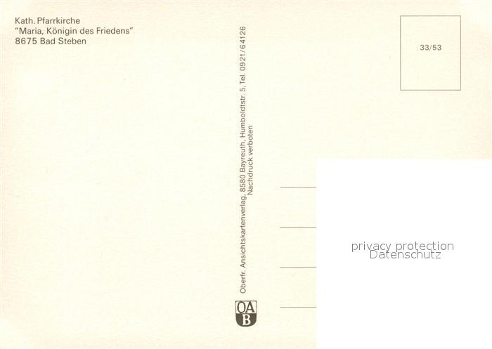 73050812 Bad Steben Katholische Pfarrkirche Maria Koenigin des Friedens postalisch nicht gelaufen Erhaltung siehe scans [KathaD81] KatCode: 11110009475112