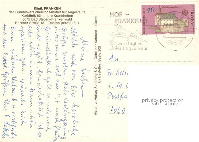 73128280 alte Postkarte Bad Steben Klinik Franken postalisch gelaufen Erhaltung siehe scans [PaolaD17] KatCode: 11110009475112