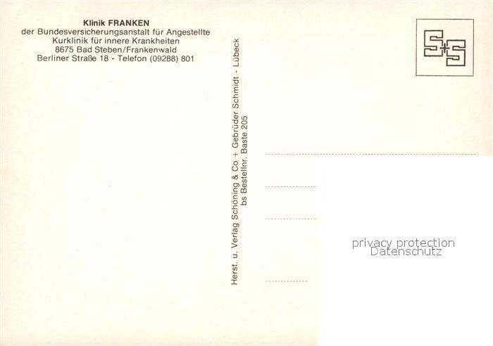 73107306 Bad Steben Klinik Franken postalisch nicht gelaufen Erhaltung siehe scans [NatalD47] KatCode: 11110009475112