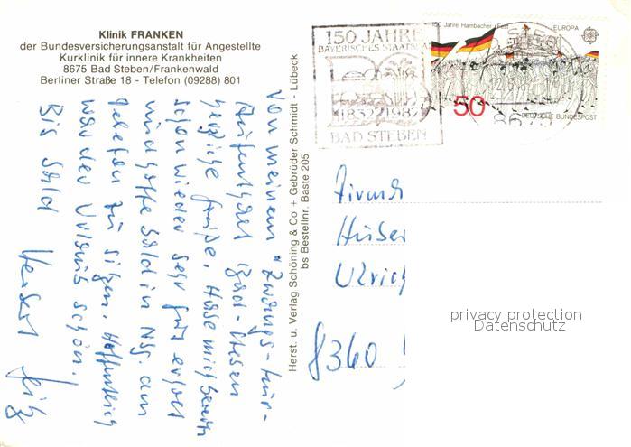 72650662 alte Postkarte Bad Steben Klinik Franken der BfA Teilansichten postalisch gelaufen Erhaltung siehe scans [WerneD78] KatCode: 11110009475112