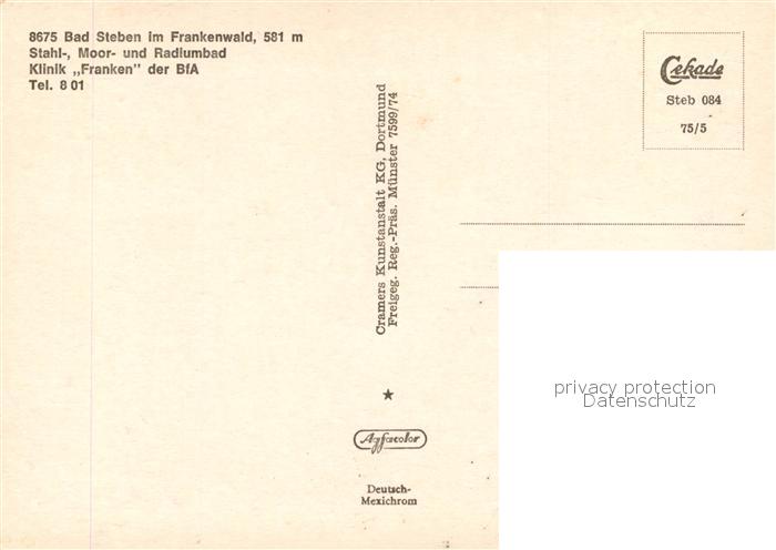 73542126 Bad Steben Klinik Franken der BfA postalisch nicht gelaufen Erhaltung siehe scans [WerneD78] KatCode: 11110009475112