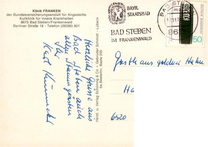 73940542 alte Postkarte Bad Steben Klinik Franken Kurklinik postalisch gelaufen Erhaltung siehe scans [FriedD77] KatCode: 11110009475112