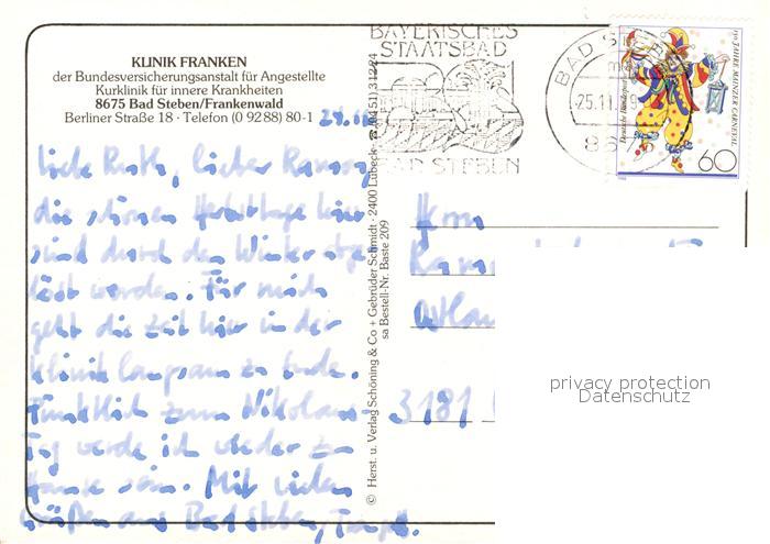 73170543 alte Postkarte Bad Steben Klinik Franken Terrasse Restaurant postalisch gelaufen Erhaltung siehe scans [FriedD77] KatCode: 11110009475112