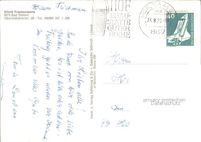 71926634 alte Postkarte Bad Steben Klinik Frankenwarte postalisch gelaufen Erhaltung siehe scans KatCode: 11110009475112