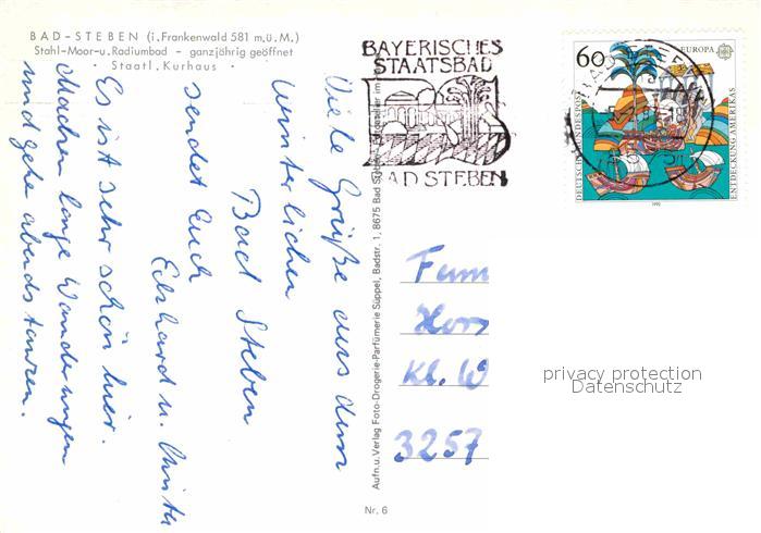 72740847 alte Postkarte Bad Steben Kurhaus postalisch gelaufen Erhaltung siehe scans [LiesaD40] KatCode: 11110009475112