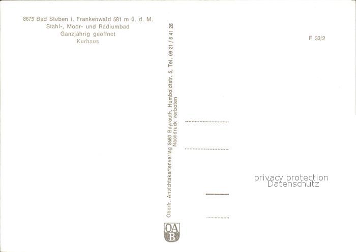 72367049 Bad Steben Kurhaus im Frankenwald postalisch nicht gelaufen Erhaltung siehe scans KatCode: 11110009475112