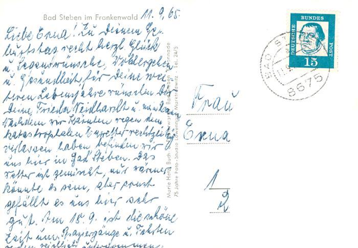 73914838 alte Postkarte Bad Steben Kurhaus Schwanenteich Quellentempel Neue und alte Wandelhalle postalisch gelaufen Erhaltung siehe scans [WerneD78] KatCode: 11110009475112