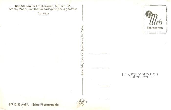 73779820 Bad Steben Kurhaus Stahl- Moor- und Radiumbad postalisch nicht gelaufen Erhaltung siehe scans [FriedD77] KatCode: 11110009475112