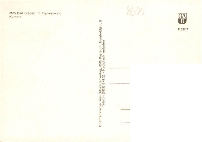 73936399 Bad Steben Kurhotel postalisch nicht gelaufen Erhaltung siehe scans [WerneD78] KatCode: 11110009475112