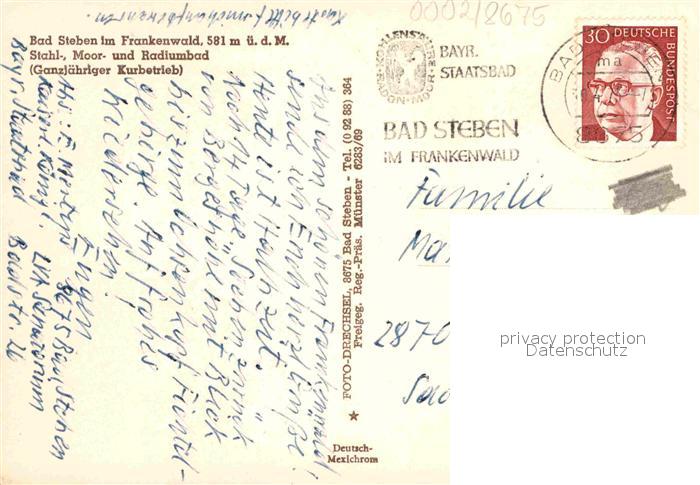72877162 alte Postkarte Bad Steben Kurort im Frankenwald Fliegeraufnahme postalisch gelaufen Erhaltung siehe scans [FriedD77] KatCode: 11110009475112