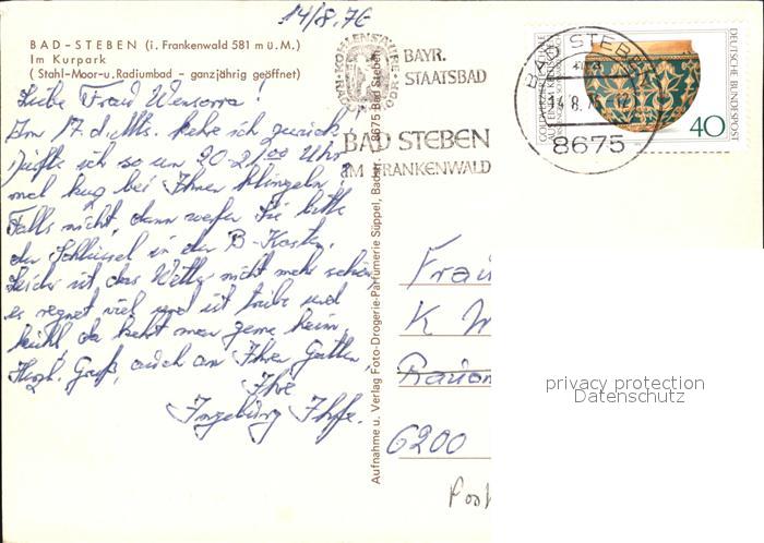72540682 alte Postkarte Bad Steben Kurpark postalisch gelaufen Erhaltung siehe scans [AntonD74 kv011box] KatCode: 11110009475112