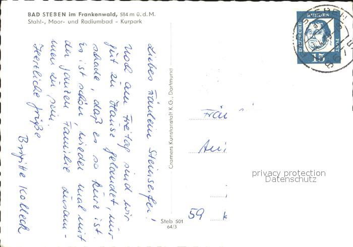 72505918 alte Postkarte Bad Steben Kurpark postalisch gelaufen Erhaltung siehe scans KatCode: 11110009475112