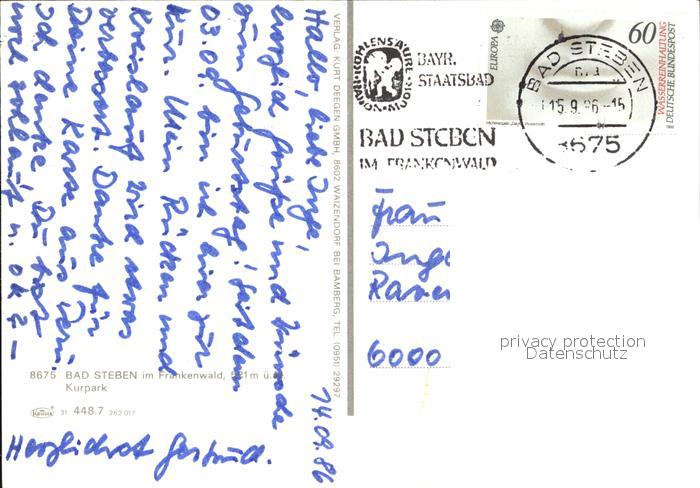 72391850 alte Postkarte Bad Steben Kurpark postalisch gelaufen Erhaltung siehe scans KatCode: 11110009475112