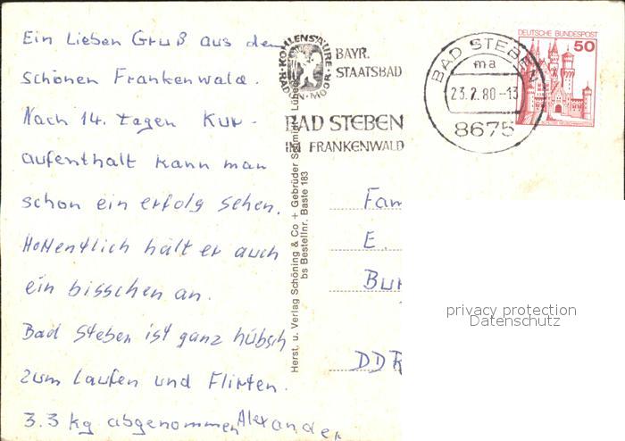 72382189 alte Postkarte Bad Steben Kurpark postalisch gelaufen Erhaltung siehe scans KatCode: 11110009475112