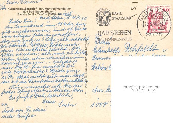 73654478 alte Postkarte Bad Steben Kurpension Saxonia Restaurant Terrasse postalisch gelaufen Erhaltung siehe scans [FriedD77] KatCode: 11110009475112
