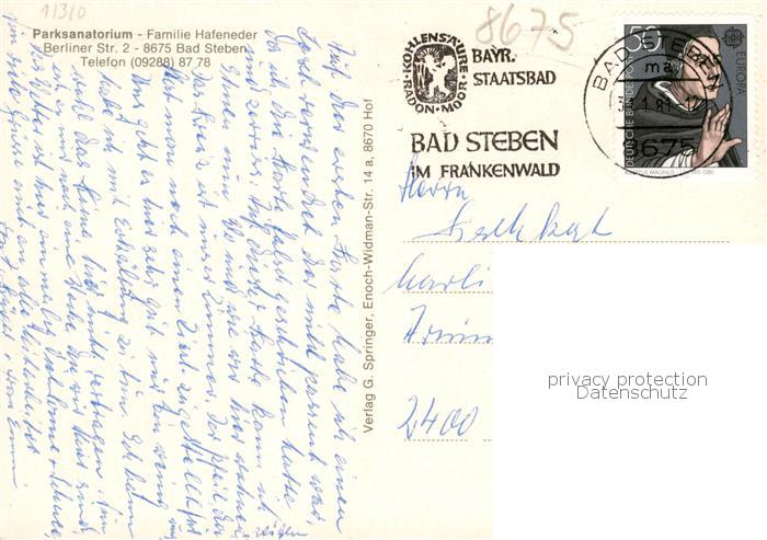 73867264 alte Postkarte Bad Steben Parksanatorium Speisesaal Foyer Hallenbad postalisch gelaufen Erhaltung siehe scans [WerneD78] KatCode: 11110009475112