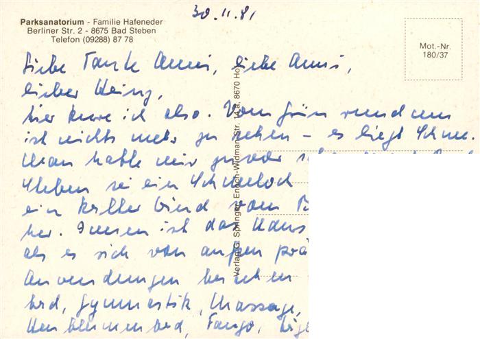 73941290 Bad Steben Parksanatorium postalisch nicht gelaufen Erhaltung siehe scans [FriedD77] KatCode: 11110009475112
