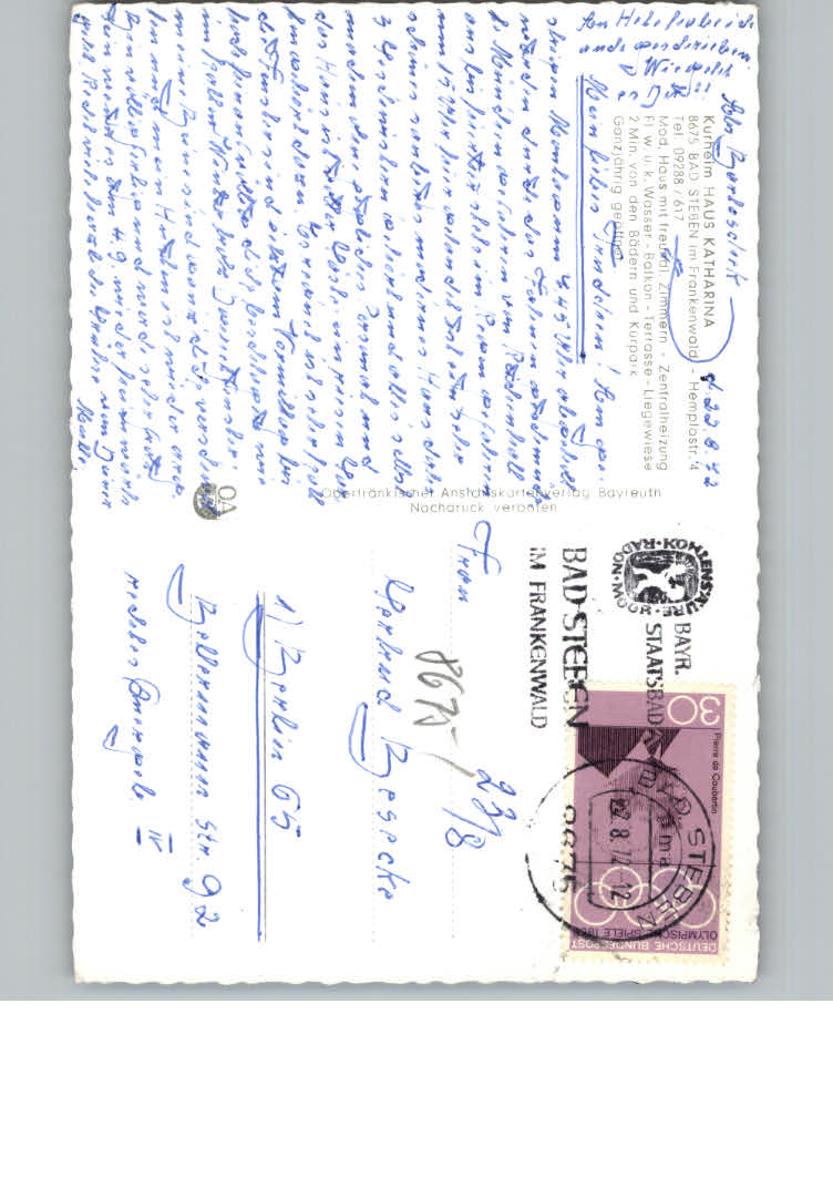 31171539 Bad Steben Pension Haus Katharina postalisch nicht gelaufen KatCode: 11110009475112