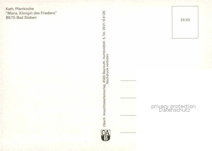 72833500 Bad Steben Pfarrkirche Maria Koenigin des Friedens postalisch nicht gelaufen Erhaltung siehe scans [FriedD77] KatCode: 11110009475112