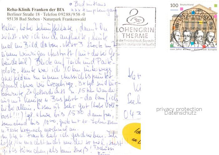 73874276 alte Postkarte Bad Steben Reha Klinik Franken der BfA Fliegeraufnahme postalisch gelaufen Erhaltung siehe scans [WerneD78] KatCode: 11110009475112