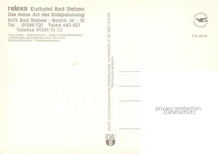 73174537 Bad Steben Relexa Kurhotel postalisch nicht gelaufen Erhaltung siehe scans [LiesaD40] KatCode: 11110009475112