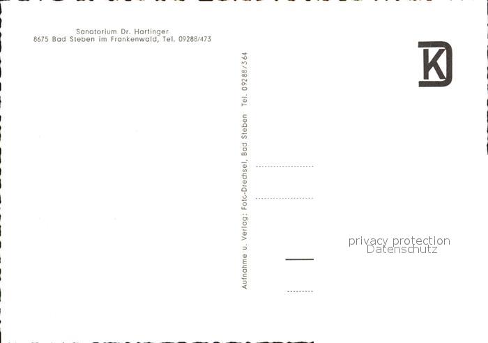 72585172 Bad Steben Sanatorium Dr. Hartinger postalisch nicht gelaufen Erhaltung siehe scans [LiesaD40] KatCode: 11110009475112