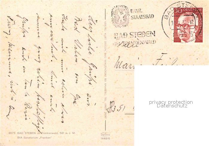 72667352 alte Postkarte Bad Steben Sanatorium Franken postalisch gelaufen Erhaltung siehe scans [AndreD76] KatCode: 11110009475112