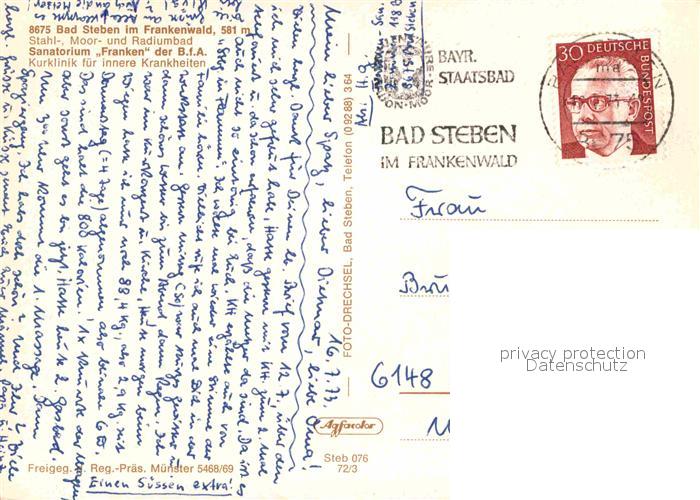 72836202 alte Postkarte Bad Steben Sanatorium Franken der BfA im Frankenwald Fliegeraufnahme postalisch gelaufen Erhaltung siehe scans [FriedD77] KatCode: 11110009475112