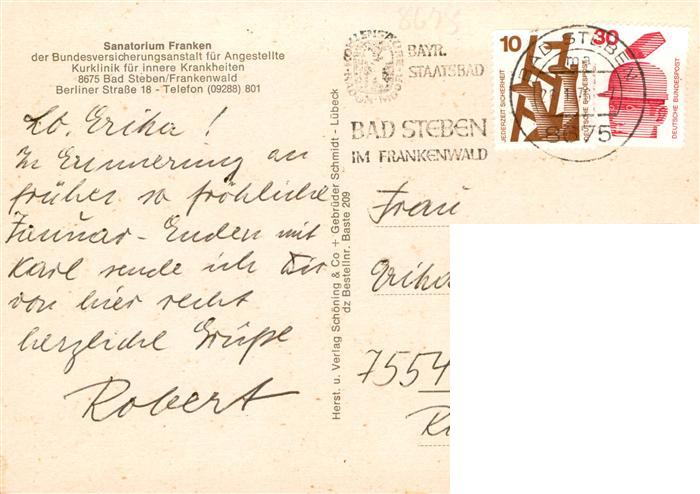 73941287 alte Postkarte Bad Steben Sanatorium Franken der BfA Kurklinik Speisesaal Terrasse postalisch gelaufen Erhaltung siehe scans [FriedD77] KatCode: 11110009475112