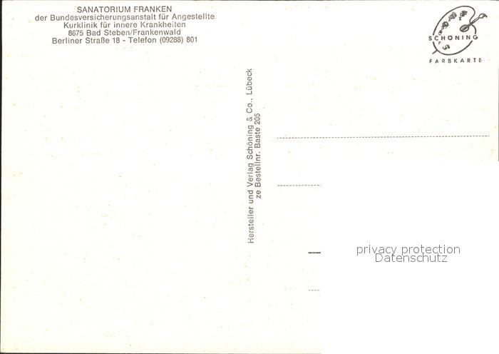 72257642 Bad Steben Sanatorium Franken der BVA Kurklinik im Frankenwald postalisch nicht gelaufen Erhaltung siehe scans KatCode: 11110009475112